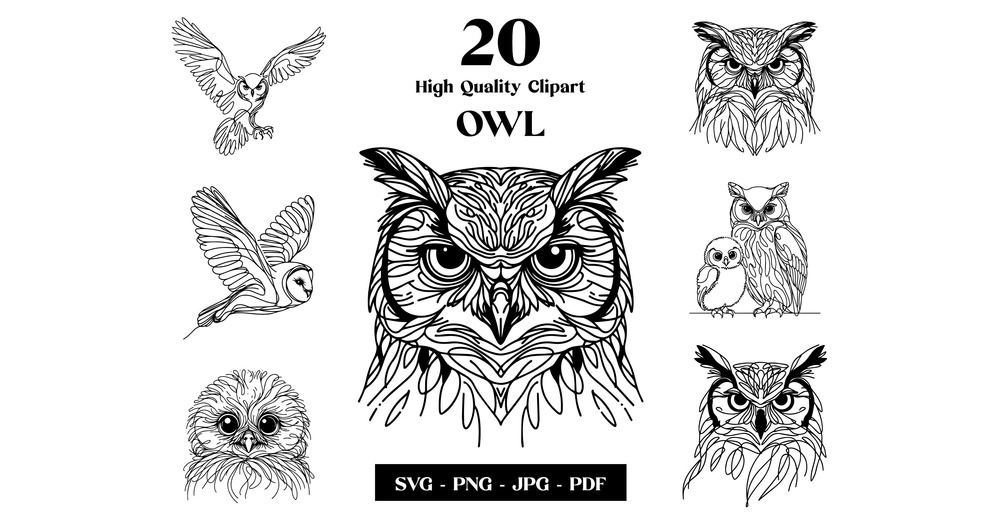 Owl Line Art SVG Clipart: Minimalist Tattoo Design (Digital Download)