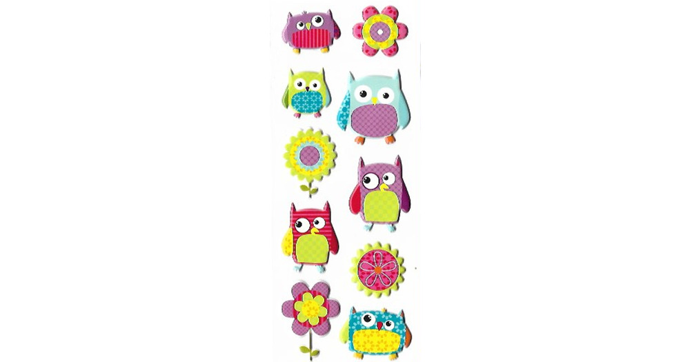 Owls and Flowers Puffy Sticker Set | 10 Adorable Colourful Stickers | Crafting Supplies | Scrapboo