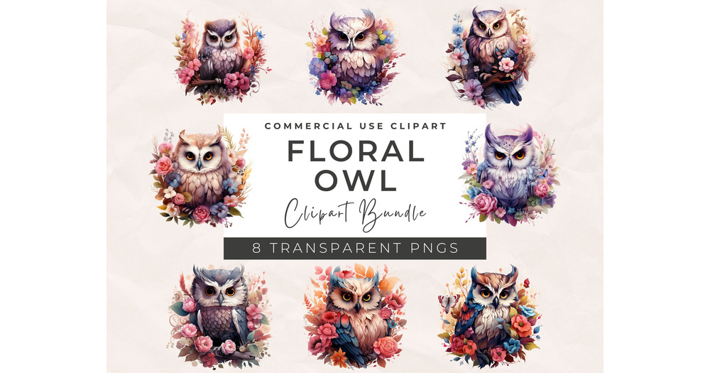 Watercolor Floral Owl Clipart: Nursery PNG Images (Commercial Use)
