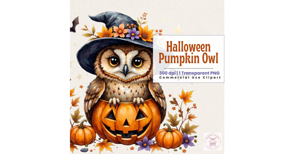 Halloween Owl Clipart: Witch Hat, Pumpkin, Autumn PNG (Digital Download