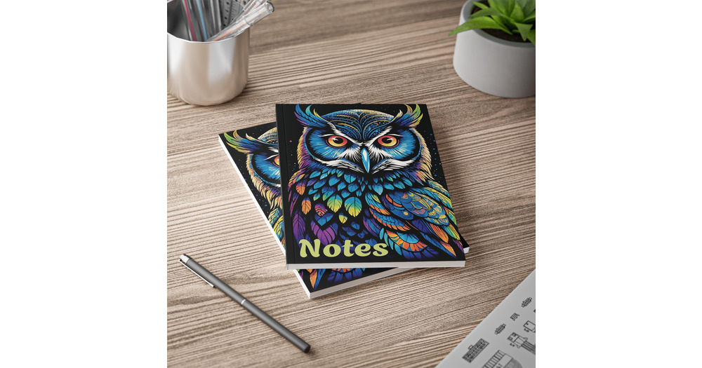 Colorful Feathered Owl Notebook A5 | Vibrant Owl Illustration