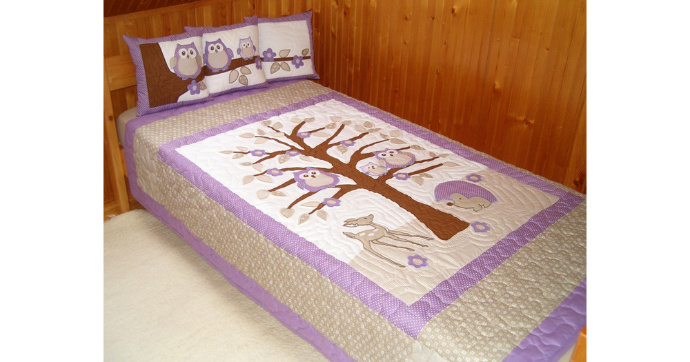 Kids Blankets, Handmade Quilt Blanket, Purple Owl Quilt and Owl Pillow