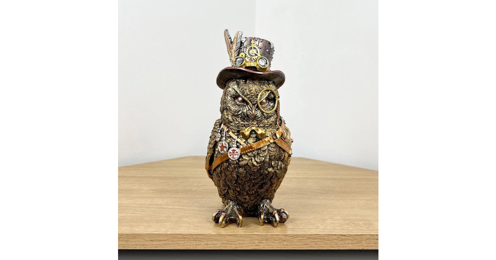 Steampunk Resin Figurine of the Wise Owl – Mechanical Fantasy Art Sculpture, Gothic Collectibl