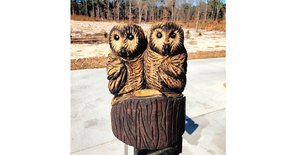 Large Chainsaw Carved Two Owl Sculpture, Wooden Bird Statue, Special Gift