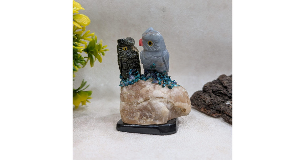Gemstone Owl Figurine, Hand-Carved Birds on Quartz Base for Home Décor & Gift, Thoughtful