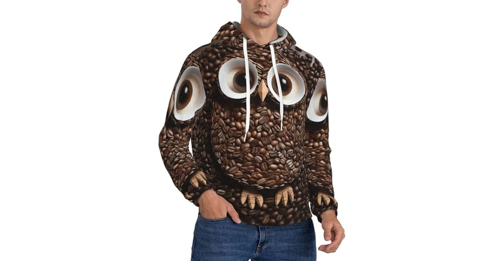 FHEBNDS Men's Fleece-Lined Hoodie Pullover Coffee bean owl Hoodies Casual Winter Hooded Sweatsh