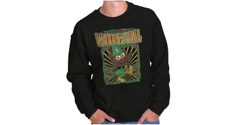 Brisco Brands Cool Psychedelic Hippie Woodsy Owl Sweatshirt for Men or Women Black