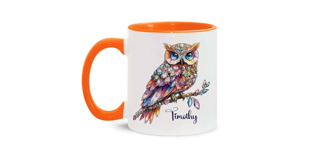 Personalized Owl Animal Coffee Mug, Custom Owl Ceramic Cup With Name, Customized Owl Accent Mug 11oz