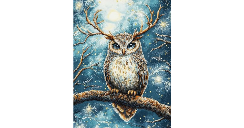 DIY Cross Stitch Kit for Beginners Owl with Antlers Whimsical Pastel Colors 11CT Embroidery Kit with