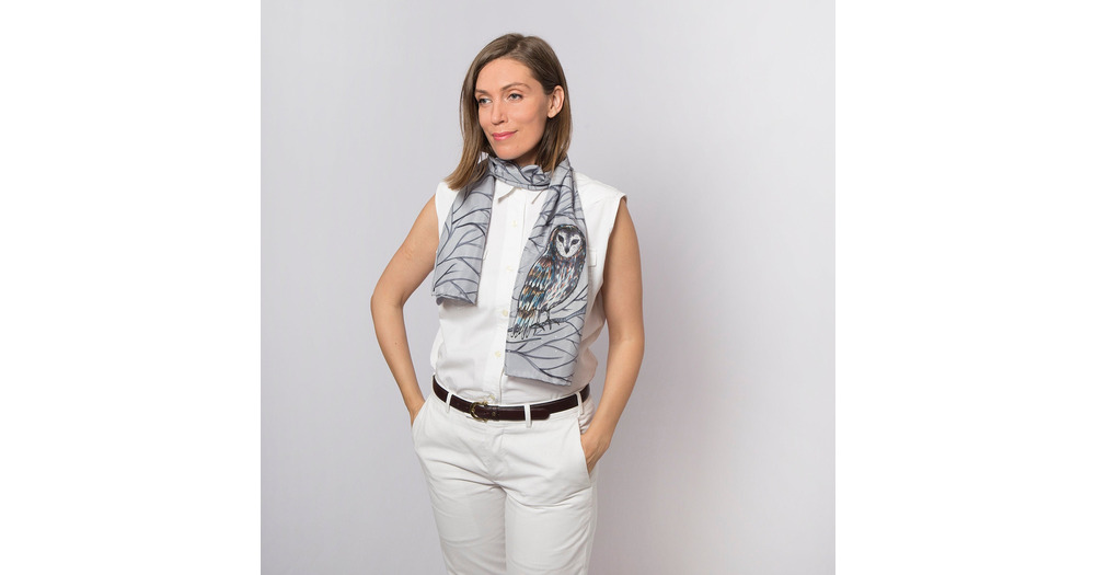 Owl Hand Painted Silk Scarf Grey Silk Scarf Bird Scarf Winter Scarf Bird Lover Woodland Snow Forest