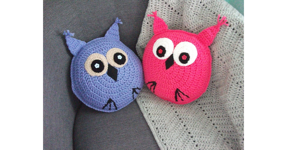 Crochet owl cushion with button eyes, conservatory, garden room, baby room,caravan, pink or blue, ro