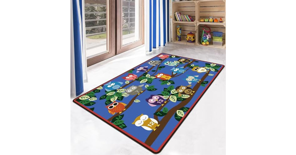 Soyalie Cute Forest Animal Owl Rugs 5x7 Feet Cartoon Kids Educational Learning Area Rug for Bedroom