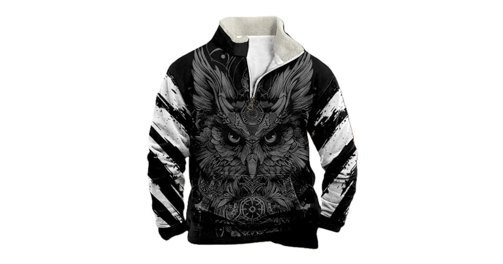 domirica Sweatshirts For Men Owl Print Long Sleeve Half Zip Pullover Big And Tall Fleece Crew Neck H