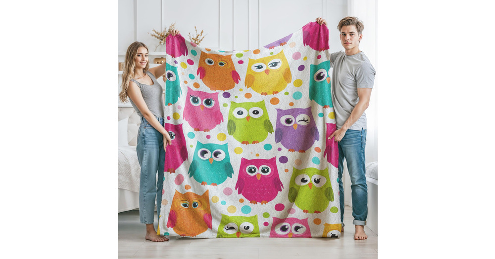 Colorful Owl Velveteen Plush Blanket, Cute Cartoon Owl Pattern Soft Fleece Blanket, Whimsical Owl Ki