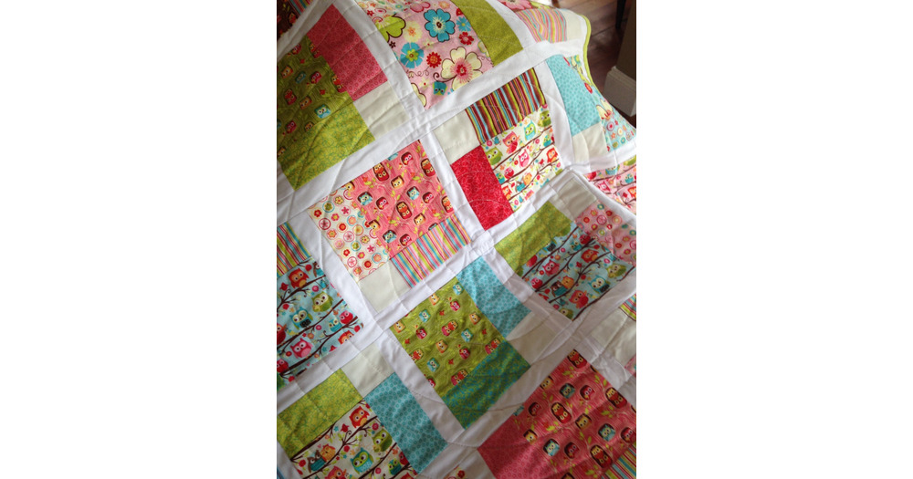 Handmade Baby Girl Owl Quilt: Cotton Flannel Crib Quilt