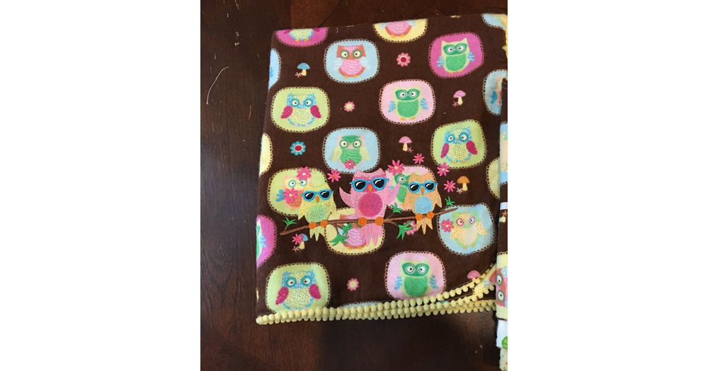 SALE - Embroidered Flannel receiving blanket, Styling Owls