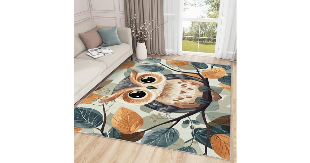 Owl Rug for Bedroom - Owl Rug, 4x5 Rug, Kids Cute Cartoon Area Rug, Kawaii Bird Washable Rugs for Li