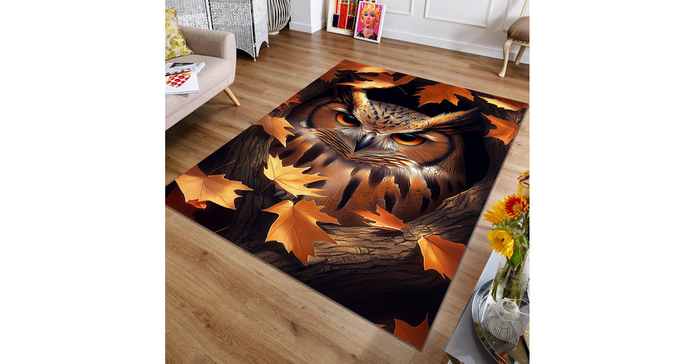 Owl Area Rug: Animal Themed Rug with Autumn Leaves