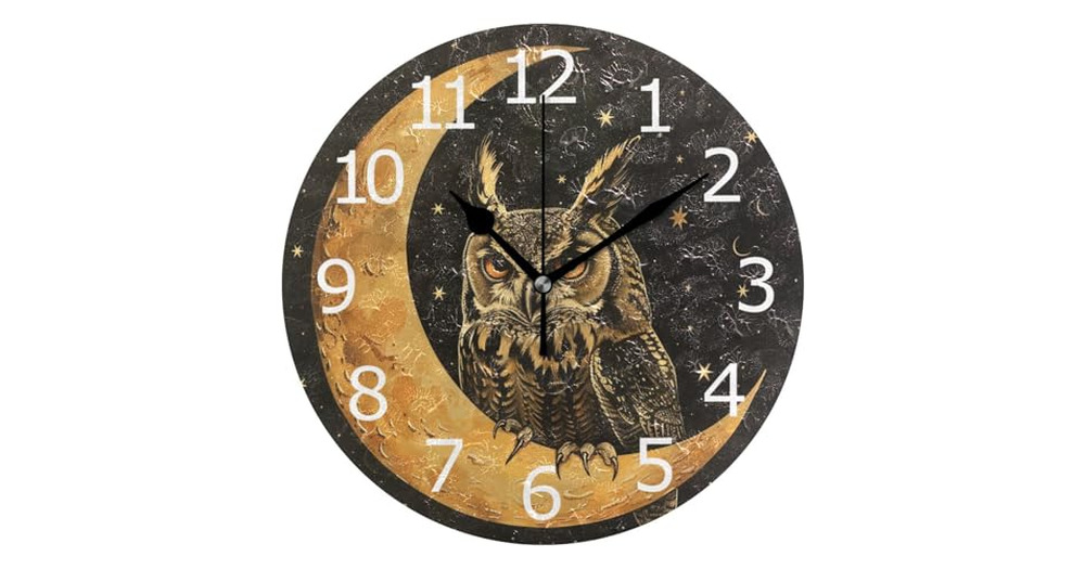 ALAZA Owl on The Moon Round Wall Clock Silent Non Ticking for Kitchen Office Bedroom,Battery Operate