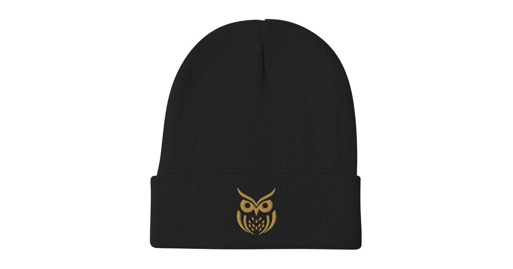 Owl Embroidered Beanie: Cotton Blend Warm Knit Hat