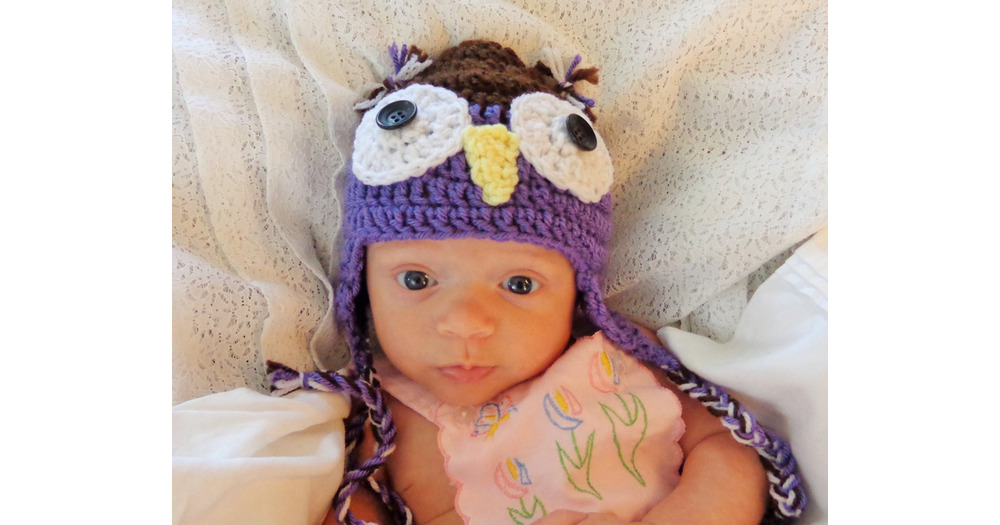 Baby Animal Hat, Owl Purple and Brown, Girls, 3-6month size