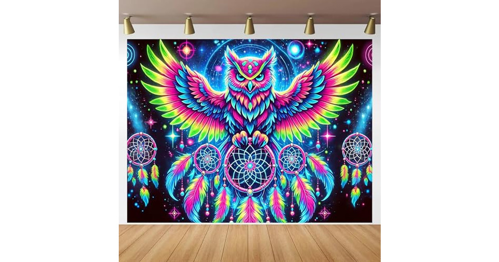 BlissYard Blacklight Tapestry Owl Dreamcatcher Wall Art 78x59 Inch Neon Psychedelic Glow in Dark Bac