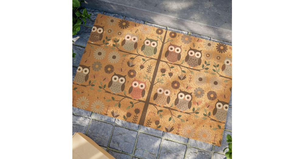 Owl Doormat | Owls on Tree Welcome Mat | Outdoor Coir Door Mat | Woodland Entrance Mat | Nature Home