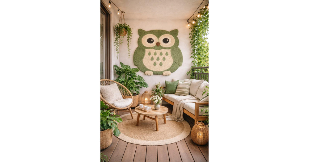 Hand Tufted Owl Wall Rug for Nursery | Cute Animal Kids Room Carpet | Soft Wool Baby Room Decor