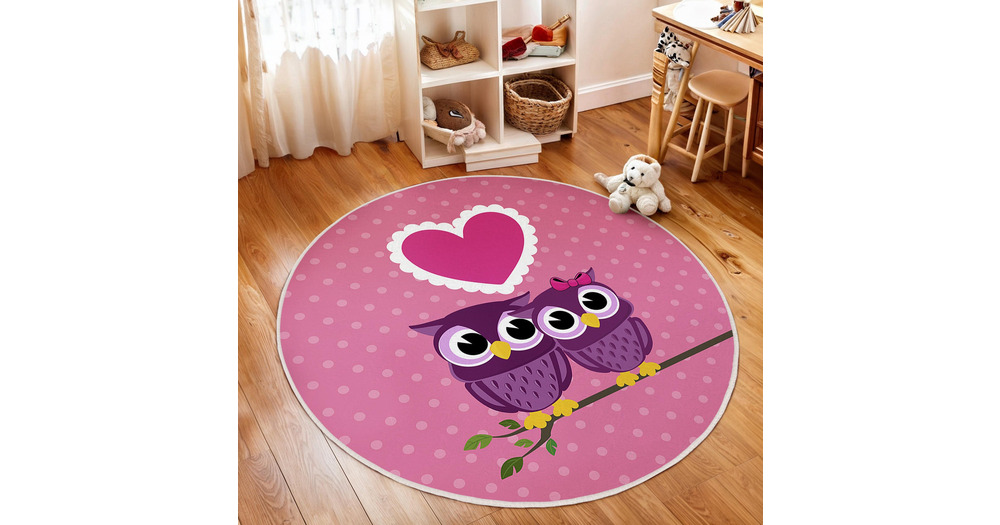 Purple Owl Love Kids Room Round Rug-Pink Heart Dotted Circle Carpet-Cute Owl Nursery Decor-Round Car