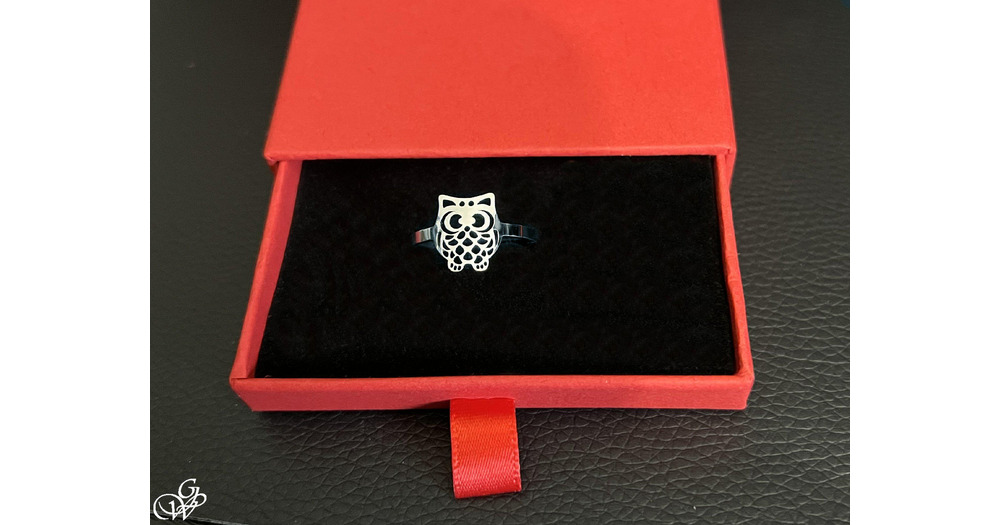 Bague ouverte petit hibou porte-bonheur, ajustable, en acier inoxydable,  argent ou or au choix
