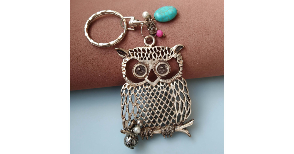 Large Owl Charm Keychain: Beaded Silver Bag Accessory