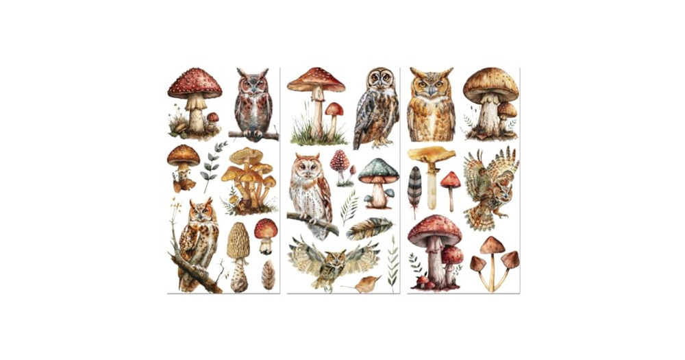 Peacoblue Rub on Transfer Decals for Furniture Crafts 6"x12", 3Pcs Owl and Mushroom Waterp