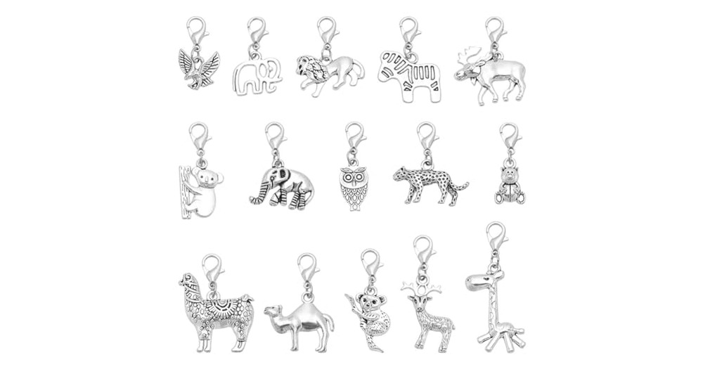 GOMAKERER 30 Pcs 15 Styles Wild Animal Charms with Lobster Clasp, Leopard Bear Deer Owl Zebra Clip o