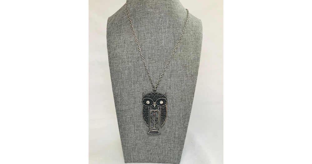 Vintage Owl Flower Pendant Necklace Designer Jewelry Silver Stone Chain Bird Rhinestone Eyes Flower