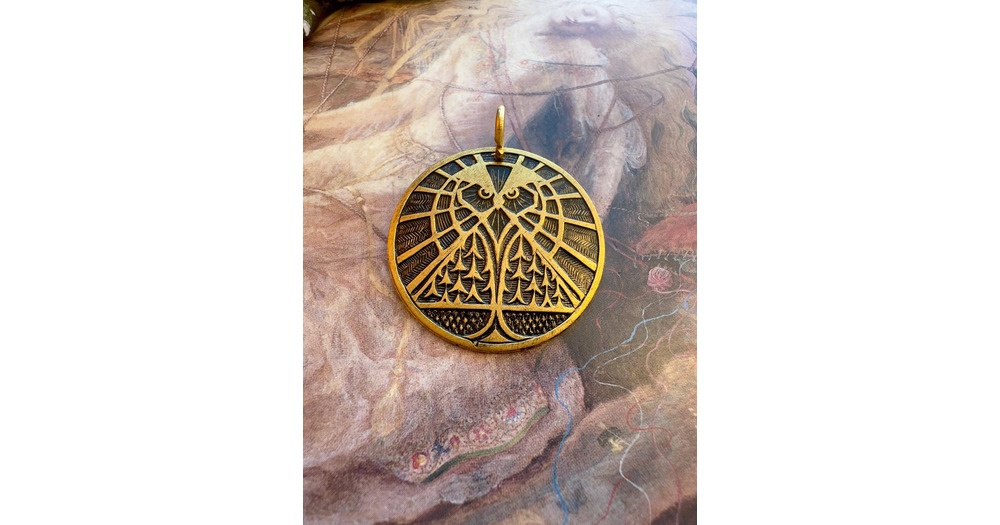 Vintage Tooled Art Deco Owl Ornate Intricate Pendant Finding Stamping Decor, 1 1/4" - REF 4995