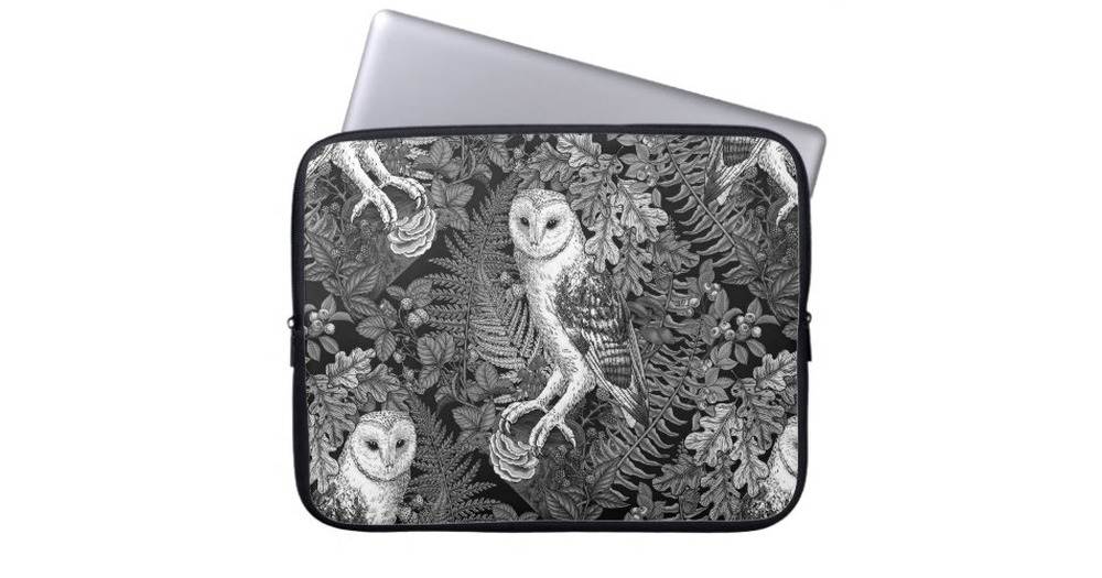 Owls, ferns, oak and berries 4 laptop sleeve