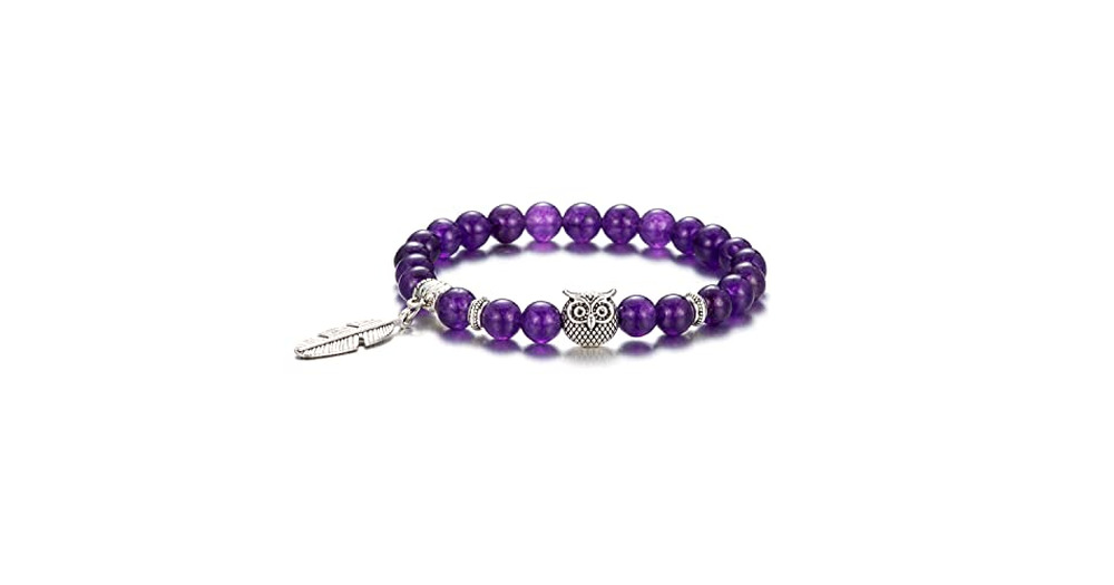 Softones 8mm Beads Owl Bracelets for Women Handmade Natural Stone Owl Gifts for Women Crystals Brace