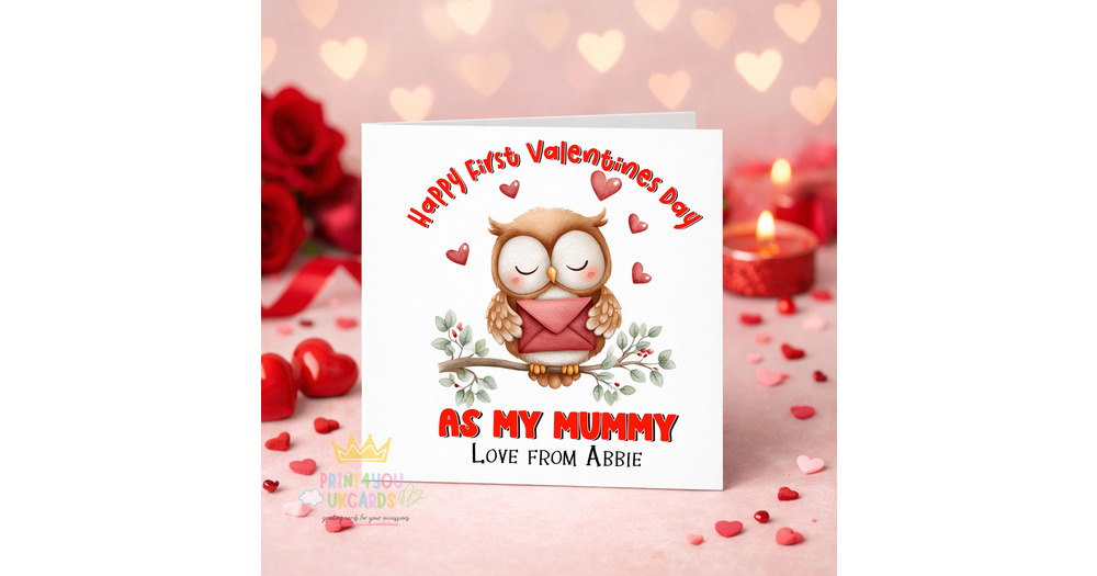 Owl Valentine’s Card from Baby - Personalised for Mummy, Daddy, Nanny