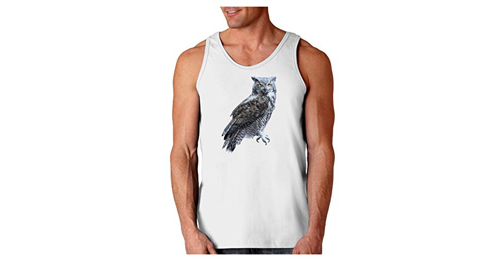 TOOLOUD Great Horned Owl Photo Loose Tank Top - White - 2XL