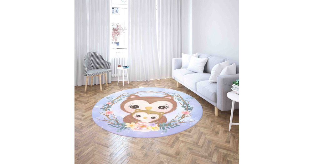 Mom and Baby Owl Floral Wreath Personalised Name Carpet Rug, Home Decor Nursery Kids Room Mat, Bathr