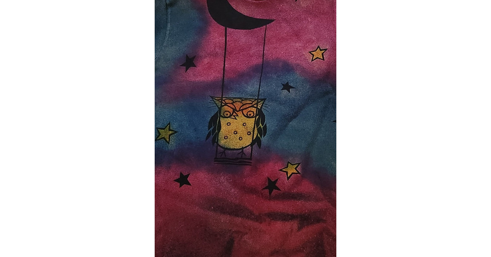 Owl swings on a crescent moon, catches a fallen star and puts it in his messenger bag, man's lar