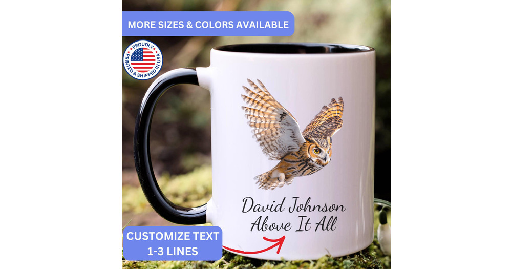 Personalized Great Horned Owl mug, custom Great Horned Owl mug, Great Horned Owl gift, Great Horned