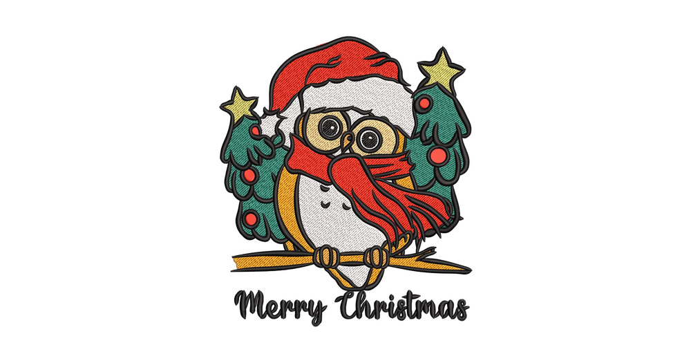 Christmas Owl Embroidery Design, Winter Cute Animal Machine Embroidery File, Instant Download