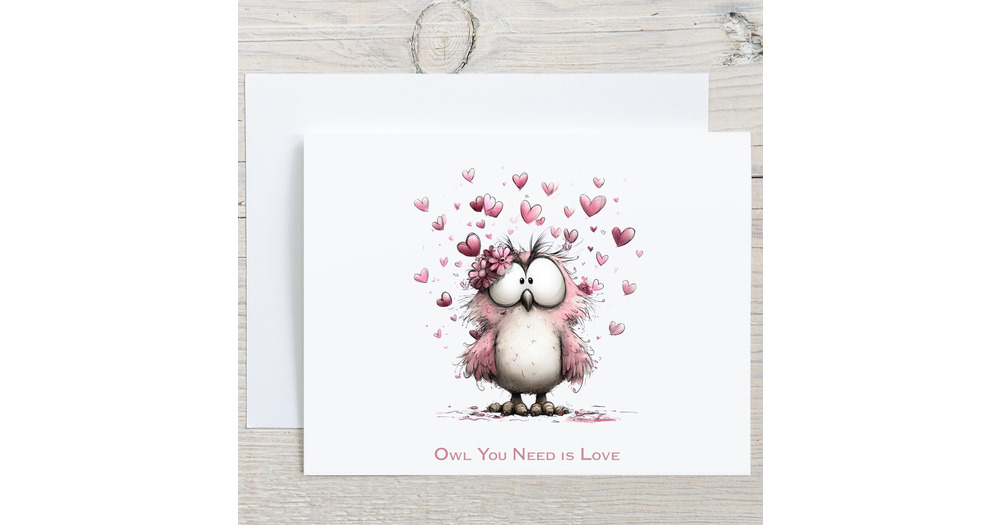 Watercolor Owl Valentines Day Card, Funny Romantic Greeting Card, Cute Love You Card