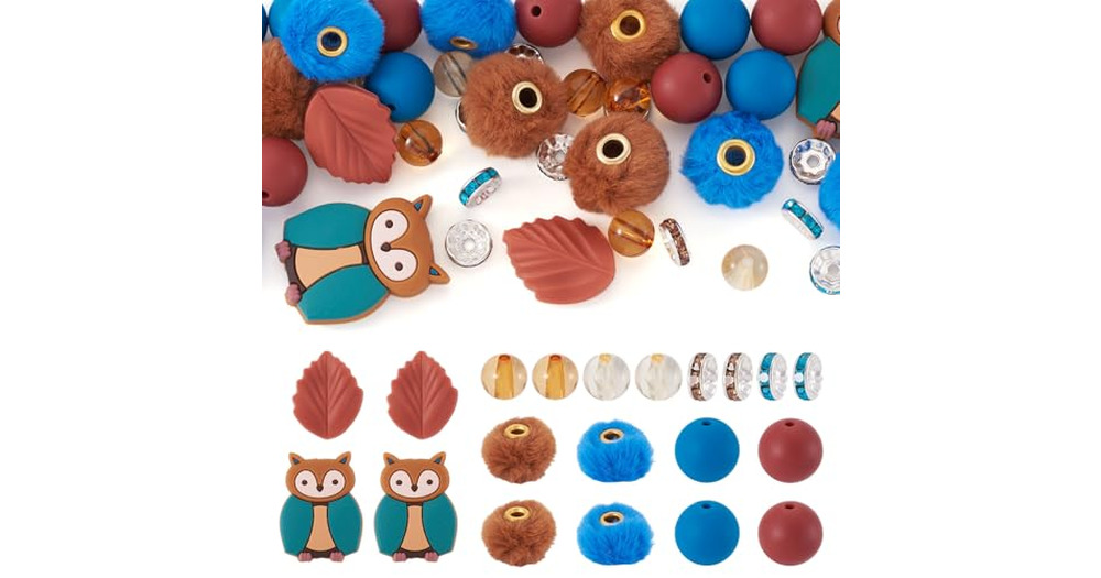 Craftdady 44pcs DIY Jewelry Making Beads Owl Leaf Round Silicone Focal Beads for Bracelets 10mm Acry