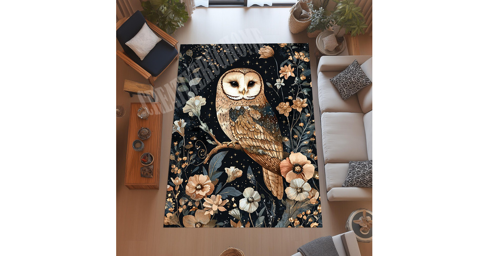 Floral Owl Area Rug, Animal Decor, Bird Art
