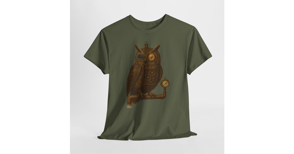 Steampunk Owl Shirt, Clockwork Robot Bird Tee, Mechanical Gear Top, Victorian Sci-Fi Gift for Engine
