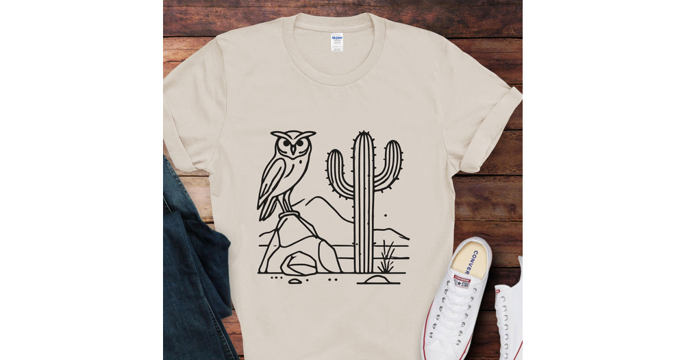 Desert Owl Line Art T-Shirt, Southwest Graphic Tee