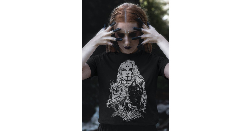 Witch T-Shirt: Owl, Cat & Witchy Design - Black Unisex Tee