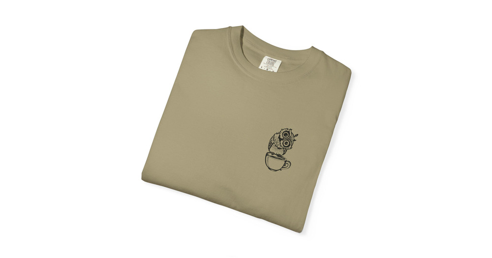 Comfort Colors® Cute Owl Cup of Coffee Vintage Look T-Shirt, Funny Animal Graphic Tee, Coffee Lo